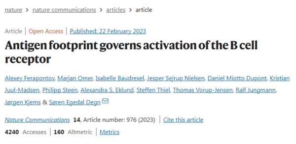 [3]Ferapontov, A., Omer, M., Baudrexel, I. et al. Antigen footprint governs activation of the B cell receptor. Nat Commun 14, 976 (2023). //doi.org/10.1038/s41467-023-36672-0