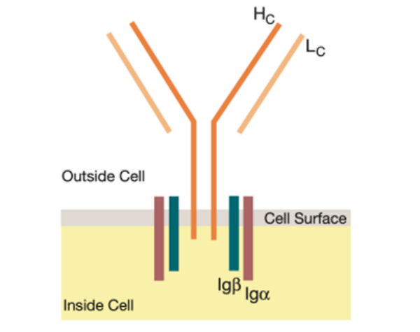 在成长为真正能够抵御细菌或病毒感染的记忆B细胞和效应B细胞(浆细胞)之前,那些从未接受过抗原刺激的初始B细胞(naive B cell)需要经历激活的步骤。这一步依赖于B细胞表面的BCR-Igα/Igβ复合物将细胞外“抗原来了”的信号传递到细胞内,使初始B细胞“知道”自己该进行增殖和分化了。