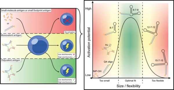 为了进一步确定抗原激活BCR的最低要求,研究人员使用了一种名为Holliday交叉的纳米支架来精确控制抗原的属性。该支架类似于DNA同源重组时会出现的一种核酸结构。