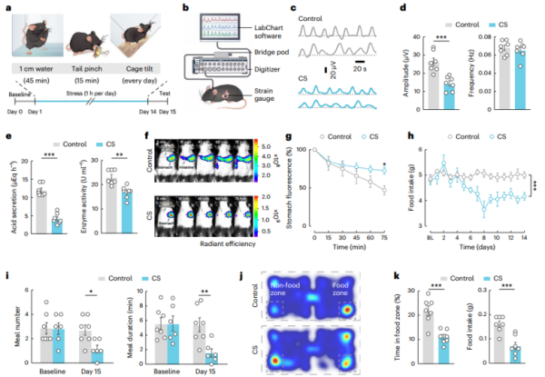 CS诱导的雄性小鼠胃功能障碍(图源自Nature Metabolism)
