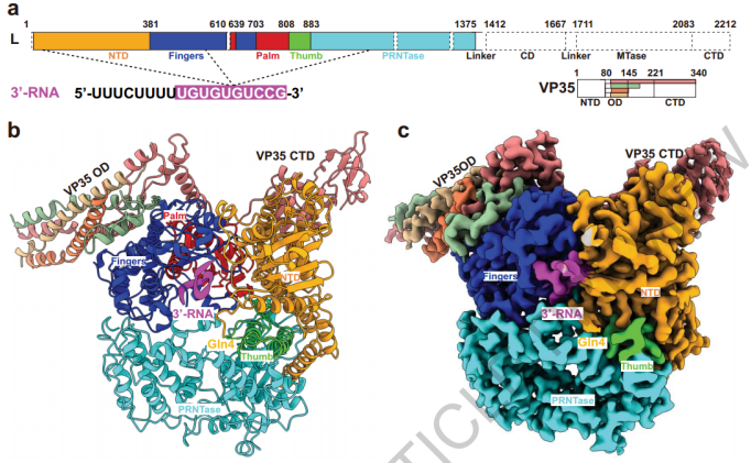 EBOV L-VP35-RNA复合物的整体结构(图源自Nature )