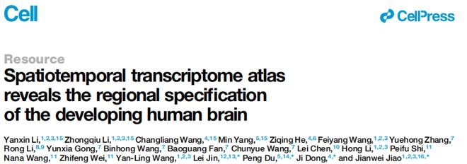 Cell重磅 | 中国科学家解码人脑多区域时空发育奥秘!