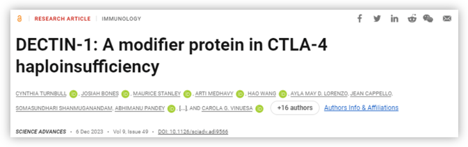 Turnbull, C et al, DECTIN-1: A modifier protein in CTLA-4 haploinsufficiency, Science Advances (2023). 10.1126/sciadv.adi9566