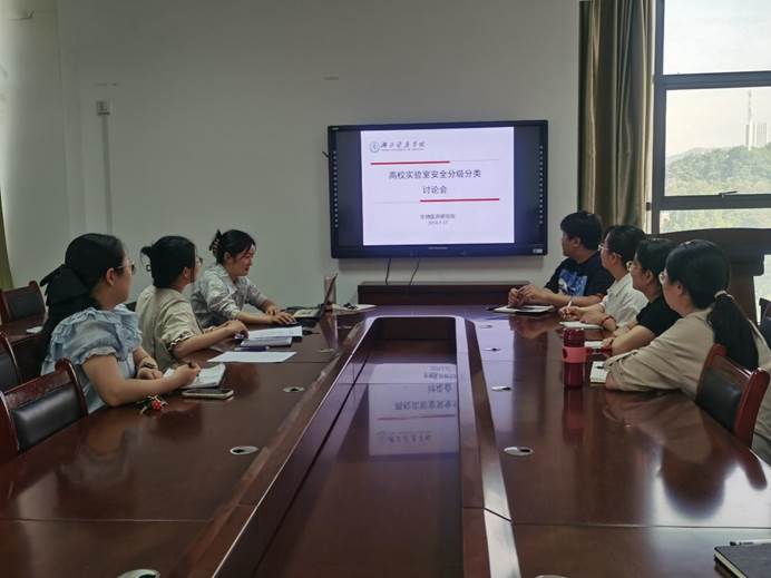 根据教育部《高等学校实验室安全分级分类管理办法(试行)》等制度要求,成人直播间 结合本部门实验室安全工作实际,于2024年5月17日下午,在科教楼1401会议室开展实验室安全分级分类讨论会。平台安全管理老师全体参加本次会议。