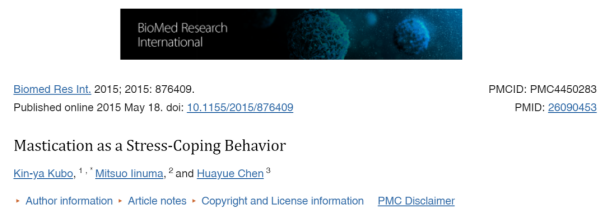 在2015年,发表在《国际生物医学研究》上一篇综述文章认为,咀嚼行为通过影响下丘脑-垂体-肾上腺(HPA)轴和自主神经系统的活动,可以有效地帮助个体应对压力。