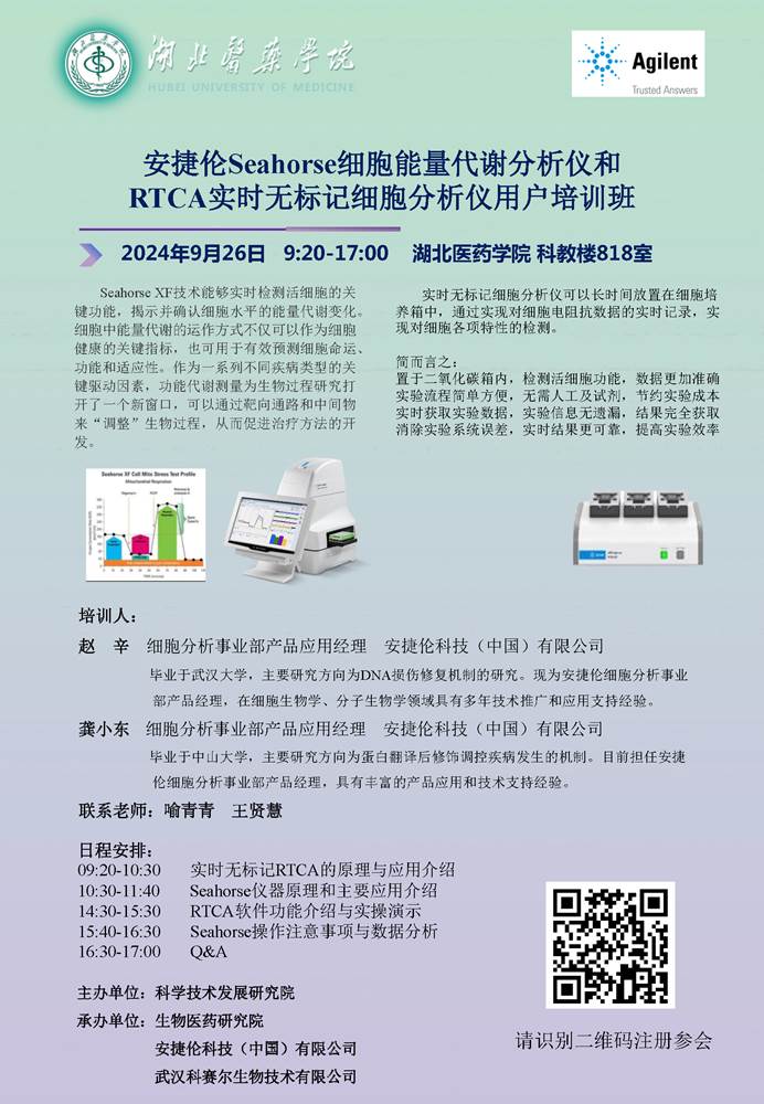 关于成人直播间-成人大秀直播 安捷伦Seahorse细胞能量代谢分析仪和RTCA实时无标记细胞分析仪培训的通知