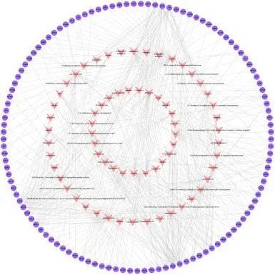 CSP-FD靶标见图2,PPI网络见图3。CSP-FD靶点及其相应化合物的网络显示450个化合物-靶点相互作用、67个化合物和117个CSP-FD靶点。