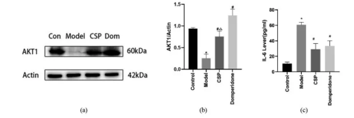 使用Westernblotting和ELISA技术检测动物模型中AKT1蛋白表达和IL-6水平的变化。