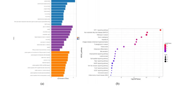注:(a)GO富集分析:前10个BPs、MFs和CCs。(b)前20个KEGG途径的气泡图。