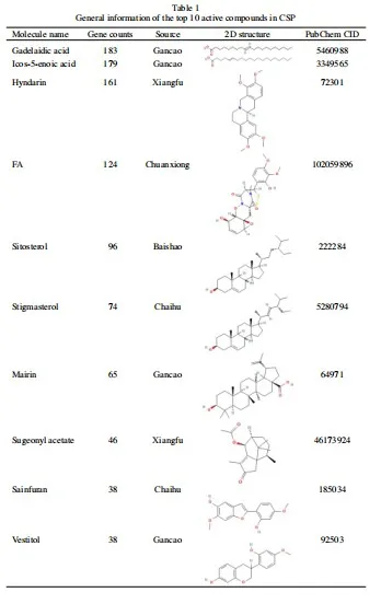 1. CSP的活性成分与靶点: