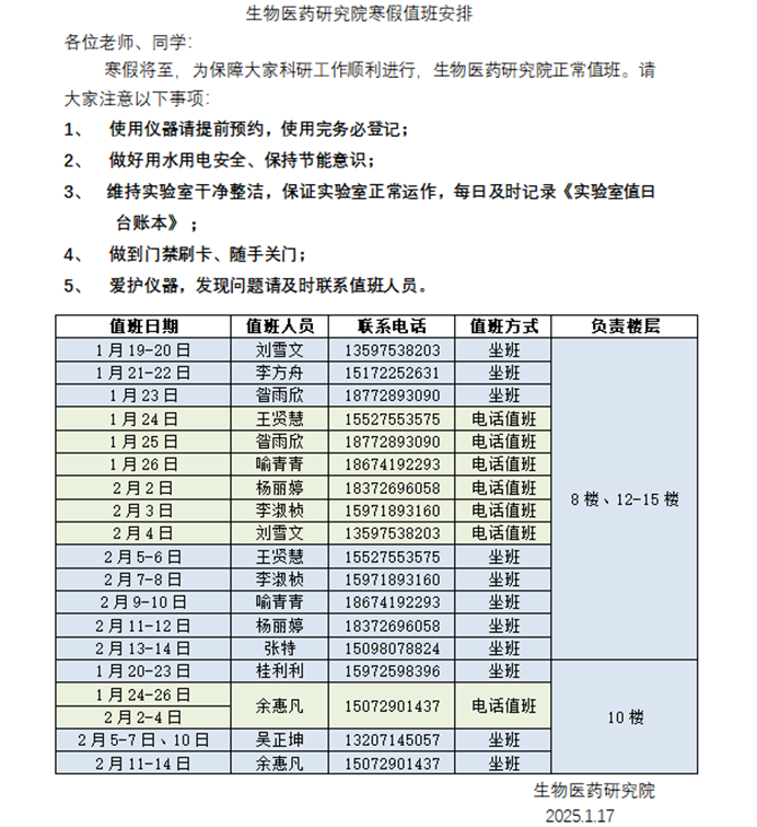 关于成人直播间 2025年寒假值班安排的通知