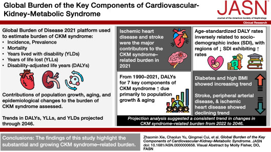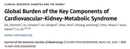 就2024年3月5日,广东省人民医院李杰、关海霞团队在Journal of the American Society of Nephrology(JASN)在线发表题为“Global Burden of the Key Components of Cardiovascular-Kidney-Metabolic Syndrome”的研究论文,基于全球疾病负担(GBD 2021)数据对CKM综合征的全球疾病负担展开了深入剖析。