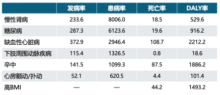 2021年CKM综合征各关键组分的疾病负担(年龄标化率/100000)