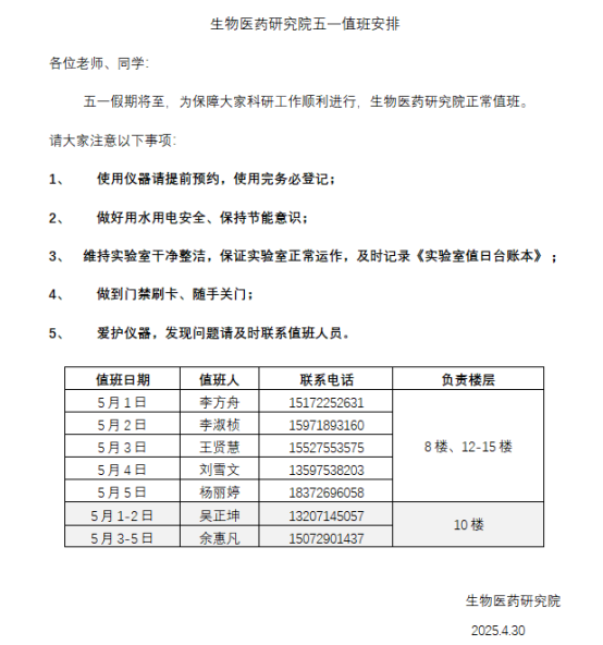 关于成人直播间 2025年五一值班安排的通知