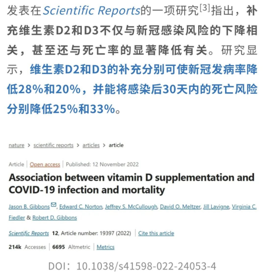 [3]Gibbons, J.B., Norton, E.C., McCullough, J.S.et al. Association between vitamin D supplementation and COVID-19 infection and mortality. Sci Rep 12, 19397 (2022). //doi.org/10.1038/s41598-022-24053-4