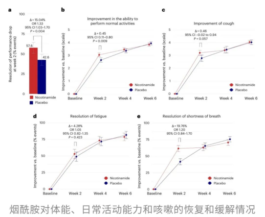 这意味着,烟酰胺不仅促进了体能的恢复,也可能加快了患者“重新动起来”的节奏,帮助他们更早回归正常生活,提升生活质量。