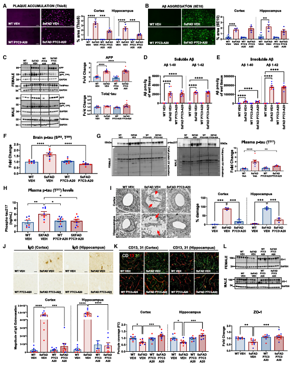 图: P7C3-A20治疗衰老症状性5xFAD小鼠可逆转淀粉样斑块堆积和血脑屏障恶化