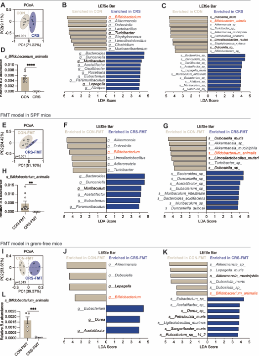 排除了激素的直接作用后,研究者利用先进的鸟枪法宏基因组测序和代谢组学技术,分析了压力后小鼠的肠道菌群和血液代谢物。他们发现了两个关键变化: