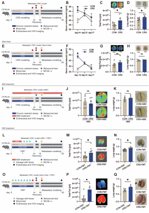 研究人员首先在小鼠中建立慢性束缚应激模型。他们在压力停止、小鼠血液中的应激激素(皮质酮)水平完全恢复正常后,才进行多种癌症(如结肠癌、乳腺癌)的转移模型接种。